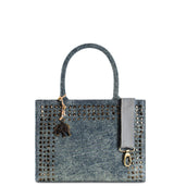 Design & Stil: Modische Handtasche aus robustem Denim mit silberfarbenen Nieten – ein urbaner Look für selbstbewusste Styles.
