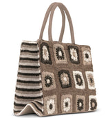 Gehäkelte Handtasche in Book-Tote-Form mit floralem Muster