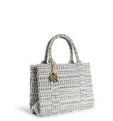 Design & Stil: Diese kleine Damen-Handtasche überzeugt durch ihr dezentes blau-weißes Muster und ihre klaren Linien.