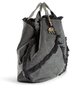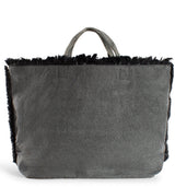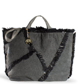 Design & Stil: Der markante Stoff in Anthrazit mit strukturierter Fransenoptik verleiht diesem Shopper einen urbanen, leicht rockigen Look.