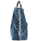 Design & Stil: Diese große Denim-Shopper-Tasche überzeugt mit einer strukturierten Oberfläche, gezackten Fransennähten und cleanem Look.