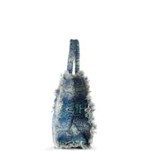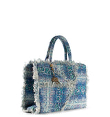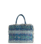 Diese geräumige Tote Bag für Damen überzeugt mit ihrem strukturierten Textil in Blau und Türkistönen.